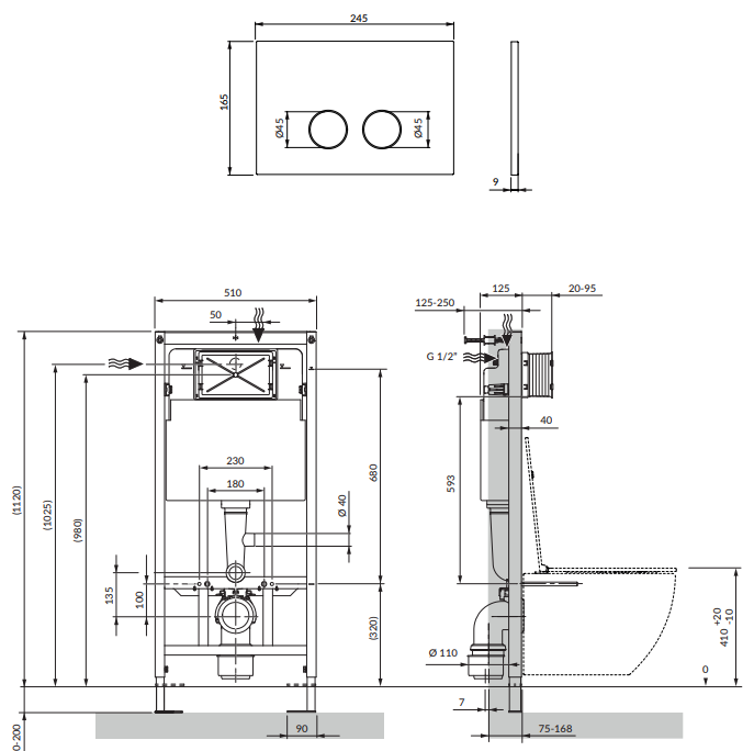 Zestaw składający się ze stelaża podtynkowego OMNIRES STRONGFRAME oraz przycisku spłukującego OMNIRES STEEL-R45, został zaprojektowany z myślą o przestrzeniach łazienkowych, w których kluczowe znaczenie mają trwałość materiałów, precyzja wykonania i wyrafinowana estetyka. Jednoelementowy zbiornik spłuczki podtynkowej gwarantuje całkowitą szczelność, a zastosowana izolacja ogranicza kondensację wilgoci, tłumi hałas i redukuje drgania, zapewniając wysoki komfort i dyskrecję użytkowania.
