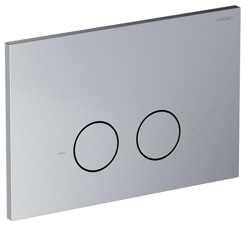 Dwudzielny przycisk spłukujący OMNIRES STEEL-R45 łączy precyzję detalu, trwałość materiału i komfort codziennego użytkowania. Wykonany z wysokiej jakości stali nierdzewnej, wyróżnia się odpornością na uderzenia, nacisk oraz działanie detergentów. Starannie wykończona, przyjemna w dotyku powierzchnia zachowuje swój wygląd i właściwości przez długi czas. Jego nowoczesna forma dyskretnie wtapia się w powierzchnię ściany, a okrągły kształt klawiszy i starannie dopracowane proporcje gwarantują wygodę codziennego użytkowania. Intuicyjne oznaczenia ułatwiają wybór ilości spłukiwanej wody dostosowanej do potrzeb, co przekłada się na oszczędność oraz większy komfort przy każdym użyciu.