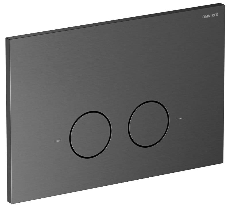 Przycisk spłukujący jest wykończony w kolorze grafit – intrygującym wykończeniem w odcieniu metalicznej szarości, o satynowej, szczotkowanej powierzchni.