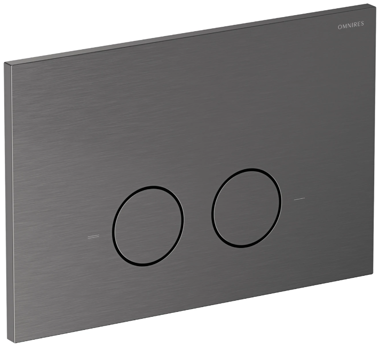 Przycisk spłukujący jest wykończony w kolorze antracyt – współczesnym wykończeniem o głębokim, metalicznym odcieniu i satynowej, szczotkowanej powierzchni. Powłoka została wykonana w zaawansowanej technologii PVD.