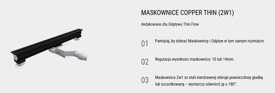 Regulacja wysokości maskownicy: 10 lub 14mm.
