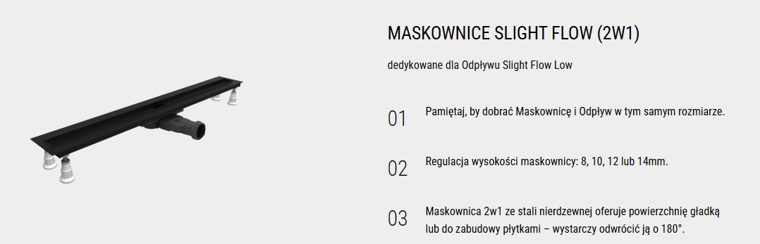 Pasują tylko do odpływu Slight Flow Low