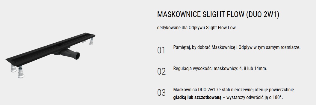 Pasują tylko do odpływu Slight Flow Low