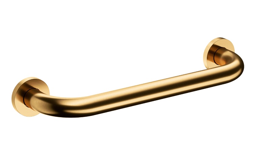Mosiężny uchwyt oporowy z linii Inclusive Design został zaprojektowany z myślą o zwiększeniu bezpieczeństwa w strefach kąpielowej i toaletowej. Gwarantuje stabilne podparcie podczas wstawania lub poruszania się w łazience, stanowiąc realną pomoc dla osób z ograniczoną mobilnością. Ergonomiczna forma i miękko wyprofilowane krawędzie dostosowują się do naturalnego ułożenia dłoni, wyraźnie podnosząc komfort korzystania z produktu. Uniwersalny design umożliwia swobodne łączenie uchwytu z akcesoriami innych kolekcji marki OMNIRES, a ponadczasowa forma sprawia, że produkt doskonale komponuje się również z pozostałymi elementami wyposażenia łazienki.