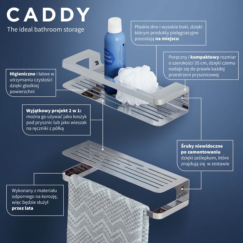 Seria Caddy to szeroki wybór koszyków prysznicowych, więc na pewno znajdziesz perfekcyjne rozwiązanie dla Twojej łazienki.