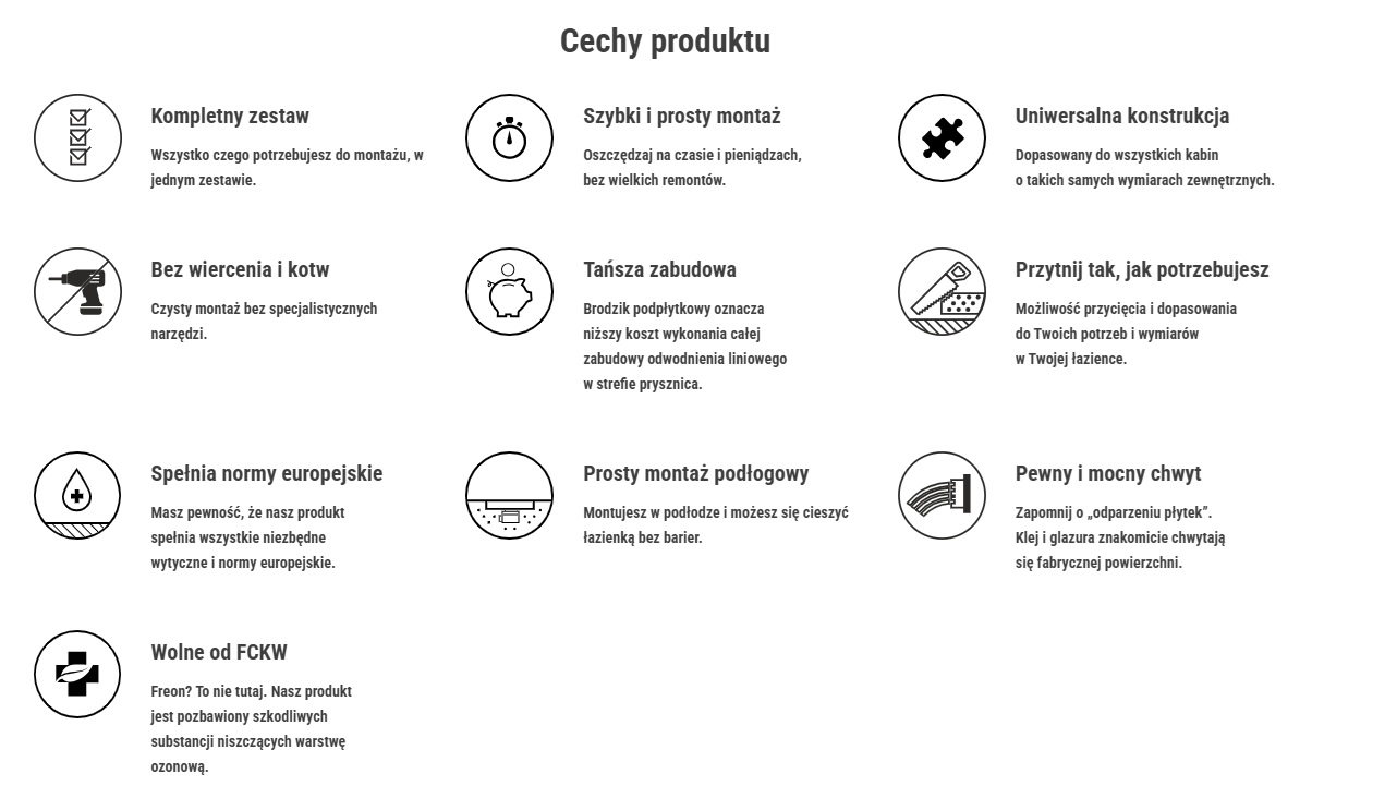Sposób montażu: w posadzce (do zabudowy glazurą)