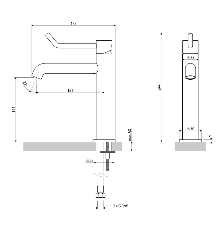 Bateria została wykonana z wysokogatunkowego mosiądzu oraz wyposażona w najwyższej jakości głowicę ceramiczną. Innowacyjne rozwiązania technologiczne pozwalają zredukować zużycie wody o połowę oraz zapewniają najwyższy komfort użytkowania.