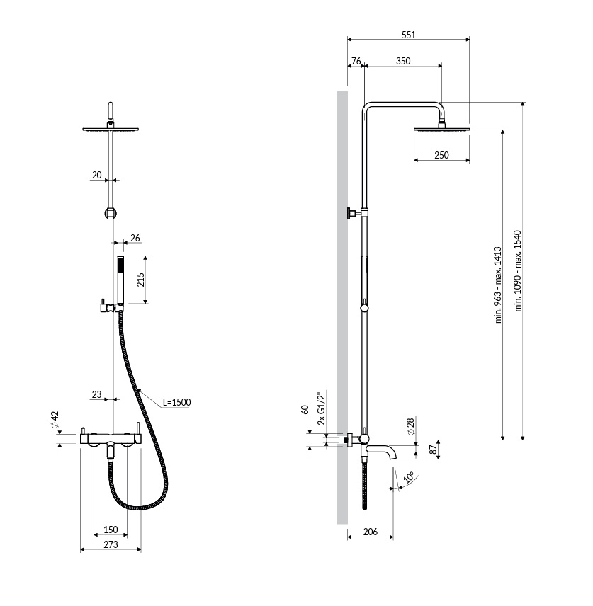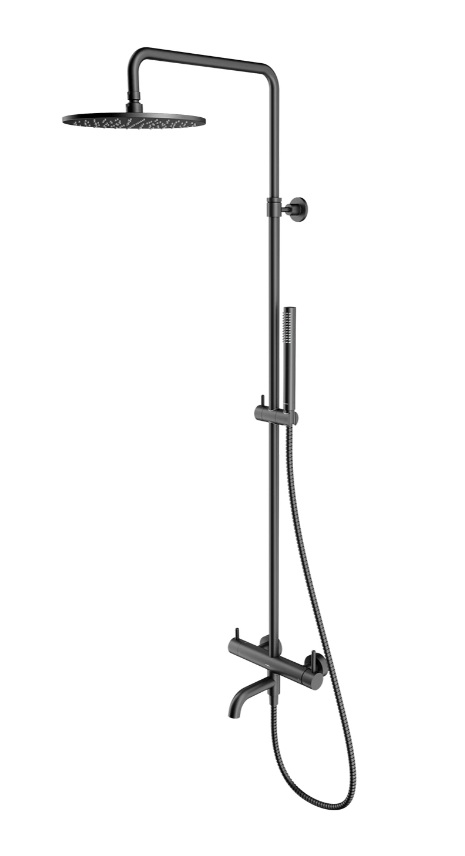 System wannowy łączy nowoczesną estetykę z wszechstronną funkcjonalnością. Oferuje relaksujący strumień z deszczownicy oraz wygodne korzystanie z rączki prysznicowej, umożliwiającej precyzyjne kierowanie strumienia wody. Zintegrowana wylewka pozwala na szybkie napełnienie wanny, zwiększając komfort i zakres użytkowania strefy kąpielowej.