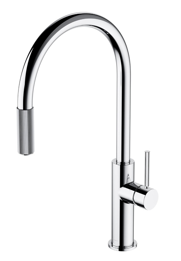 Bateria kuchenna OMNIRES SWITCH łączy minimalistyczne, oparte na wyważonych proporcjach wzornictwo z praktyczną funkcjonalnością, dostarczając wodę zwykłą oraz filtrowaną. Wyraziste, precyzyjnie karbowane detale pozwalają na intuicyjne użytkowanie, wskazując dwa niezależne punkty otwarcia wody: zwykłą na mieszaczu i filtrowaną na końcu wylewki. Wystarczy przekręcić umieszczony na niej pierścień, by napełnić szklankę szybkim strumieniem wody pitnej. Obrotowa, wyciągana wylewka dodatkowo zwiększa funkcjonalność baterii, zapewniając większą swobodę pracy przy zlewozmywaku. Ułatwia płukanie, mycie i napełnianie naczyń oraz dokładne czyszczenie całej jego powierzchni.