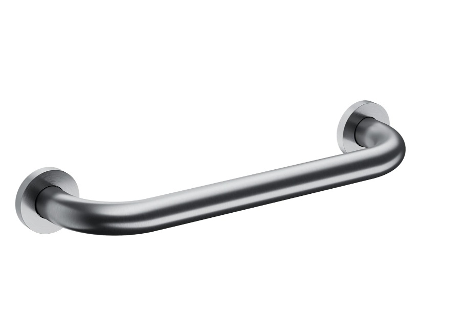 Mosiężny uchwyt oporowy z linii Inclusive Design został zaprojektowany z myślą o zwiększeniu bezpieczeństwa w strefach kąpielowej i toaletowej. Gwarantuje stabilne podparcie podczas wstawania lub poruszania się w łazience, stanowiąc realną pomoc dla osób z ograniczoną mobilnością. Ergonomiczna forma i miękko wyprofilowane krawędzie dostosowują się do naturalnego ułożenia dłoni, wyraźnie podnosząc komfort korzystania z produktu. Uniwersalny design umożliwia swobodne łączenie uchwytu z akcesoriami innych kolekcji marki OMNIRES, a ponadczasowa forma sprawia, że produkt doskonale komponuje się również z pozostałymi elementami wyposażenia łazienki.